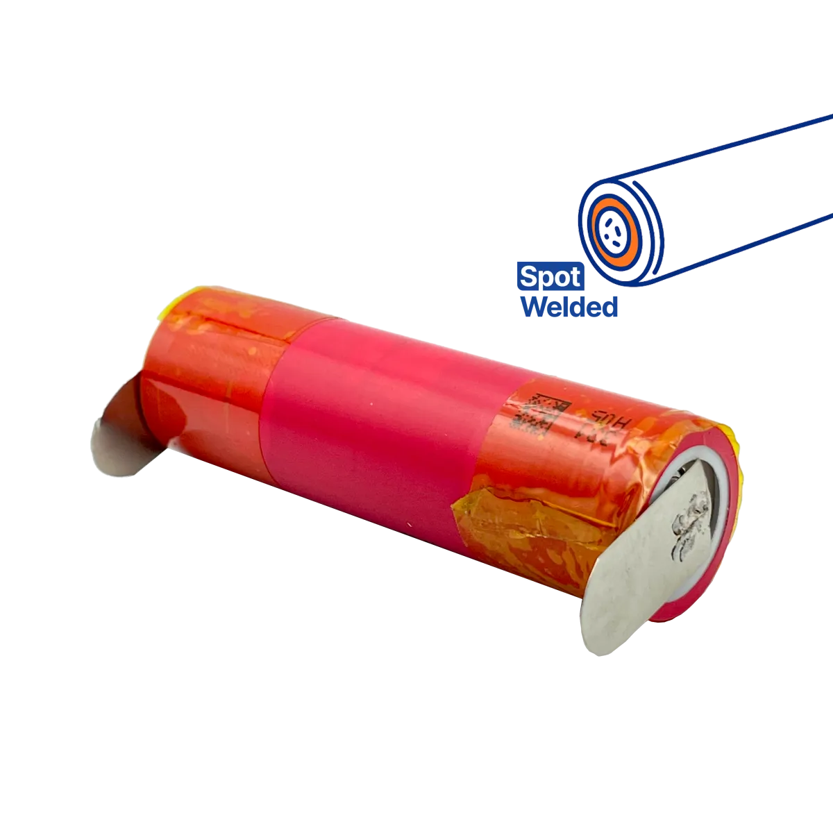 Ogniwa z widocznymi śladami zgrzewania punktowego (spot welds) na biegunach. Obecność śladów po zgrzewaniu nie ma wpływu na właściwości ogniwa oraz poprawność jego działania. Ślady zgrzewania efekt procesu produkcji lub przygotowania do integracji, nie stanowią one defektu.